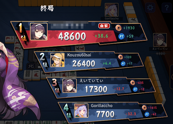 私は現在雀士★★★です。東風戦をやり48600点でトップでした。2025.11.20 記事作成雀魂をレビューします。雀魂(じゃんたま)は2018年より中国のキャットフードスタジオが開始したオンライン麻雀サービスで、日本では2...