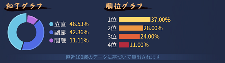 和了グラフと順位グラフはスタイルと同様直近100戦のデータに基づいています。