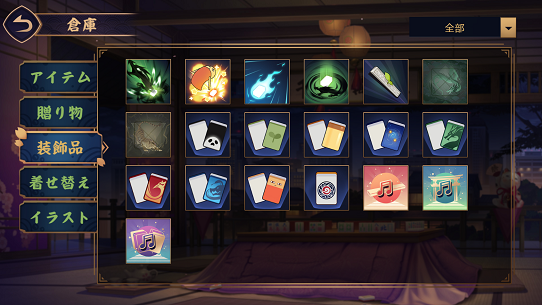 獲得した装飾品を見ることができます。これらは寮舎で設定できます。